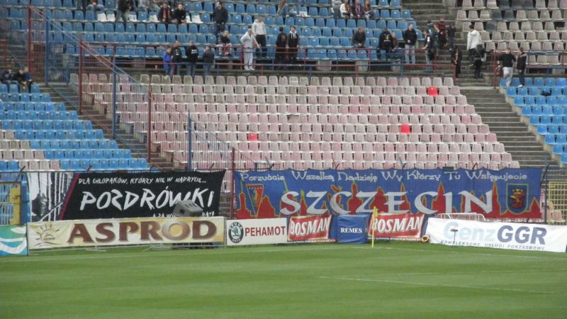 Po wielokrotnych zmianach terminu rewanżowego meczu Pucharu Polski we wtorek odbyło się w końcu spotkanie Pogoni z Ruchem. Do Szczecina dotarła grupa 320 fanów chorzowskiego Ruchu, wspierana przez liczną delegację kibiców Widzewa. Zbiórka na wyjazdowy mecz została zaplanowana na wtorek na godz. 7:15 na stacji Chorzów Miasto, gdzie ponad 15 minut później zebrani kibice ruszyli w stronę dalekiego Szczecina. Podróż minęła spokojnie i chorzowscy fani ze stacji Szczecin Dębie zostali przetransportowania autobusami na stadion, gdzie zameldowali się ponad 1,5 godziny przed rozpoczęciem spotkania. Kibice po szczegółowych rewizjach i kontrolach alkomatem w grupach kilku osobowych zostali doprowadzeni do sektora gości. W czasie, gdy "klatka" się zapełniała, na trybunach gospodarzy przybywało coraz więcej ludzi. Ogólnie mecz obejrzało ponad 10.000 kibiców Pogoni, w tym 320 fanów Ruchu. Chorzowianie wywiesili tylko jedną flagę "P (R) F" oraz prowadzili sporadyczny, ale w miarę dobry doping, który momentami przebijał się przez śpiewy szczecinian.