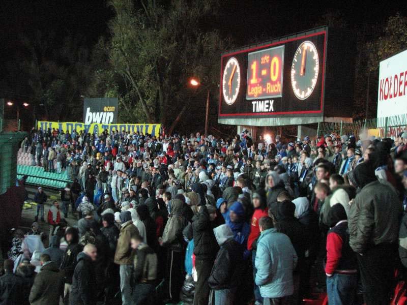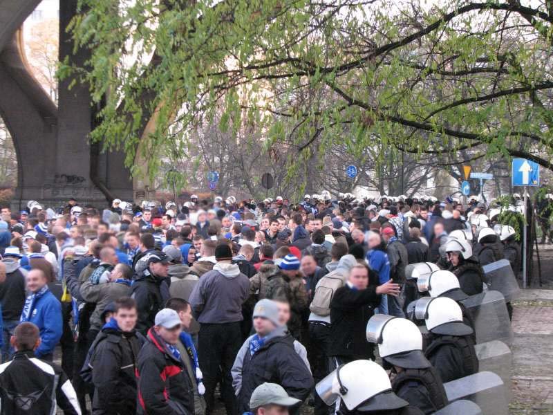 Ten przedostatni wyjazd w tym sezonie z pewnością dla wielu był tym najbardziej prestiżowym. Szkoda, że Canal+ przełożył datę rozegrania meczu, bo nasza liczba z pewnością byłaby większa, gdyby mecz rozgrywany był w sobotę, jak pierwotnie ustalono. Z Chorzowa Batorego wyruszyliśmy specjalem o godzinie 10:00 (lokomotywa + 5 wagonów). Na stacji Warszawa Powiśle zameldowaliśmy się około godziny 15:00. Podróż przebiegła spokojnie, 20 minutowy przemarsz ulicami Warszawy również. Wśród pustych uliczek (tylko my i policja) można było usłyszeć donośne "jaki tu spokój..." Na stadion pierwsze osoby zostały wpuszczone mniej więcej na godzinę przed pierwszym gwizdkiem sędziego.