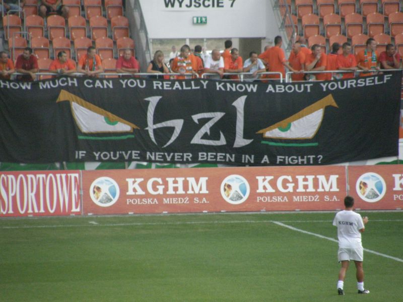 Choreografia składała się z makiety przedstawiającej góry, nad którą pojawiły się pasy materiału tworzące herb Ruchu. Całość uzupełnił transparent "Nawet najwyższe górskie szczyty nie przesłonią blasku prawdziwej chwały". Miejscowi bez oprawy, ale praktycznie cały mecz prowadzi niezły doping (szczególnie, gdy włączali się do niego fani z prostej), jednak na naszym sektorze byli słyszalni jedynie w chwilach drobnego przestoju na zaczerpniecie powietrza. Całe spotkanie odbyło się bez obustronnych bluzg. Na płotach wywieszone zostały flagi: "Niebiescy", "P /R\ F", "Ultras", "Chachary", "R.ŚL.", "Wielkie Hajduki", "Halemba", "Kęty", "Radlin", "Lędziny&Bieruń" oraz "Chojny" (Widzewa). Mecz zakończył się zwycięstwem Ruchu 1:0, co zaowocowało wspólnymi śpiewami i ogólną euforią. Podróż powrotna przebiegła w wyśmienitych nastrojach, spowodowanych trzecią z rzędu wygraną "Niebieskich".