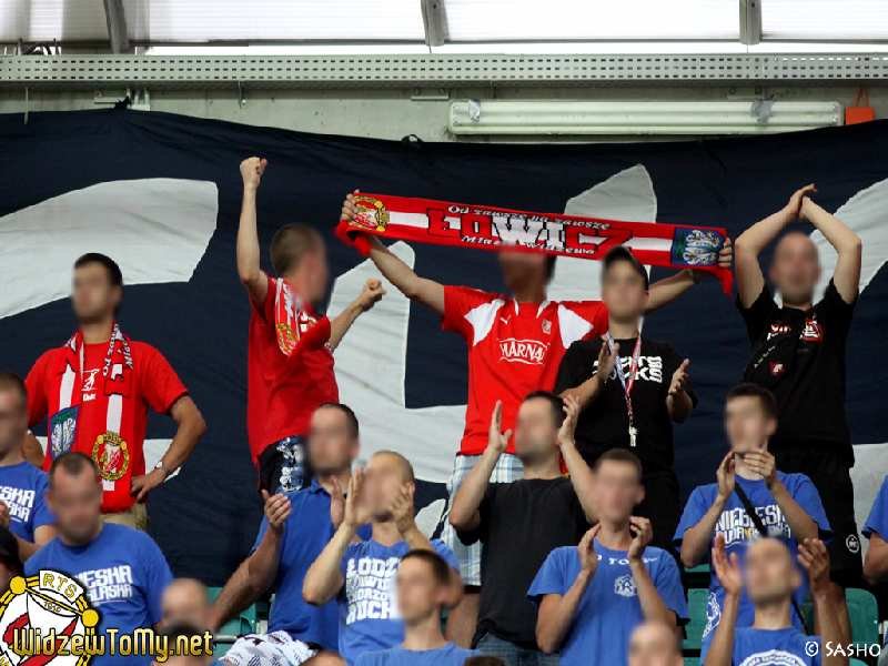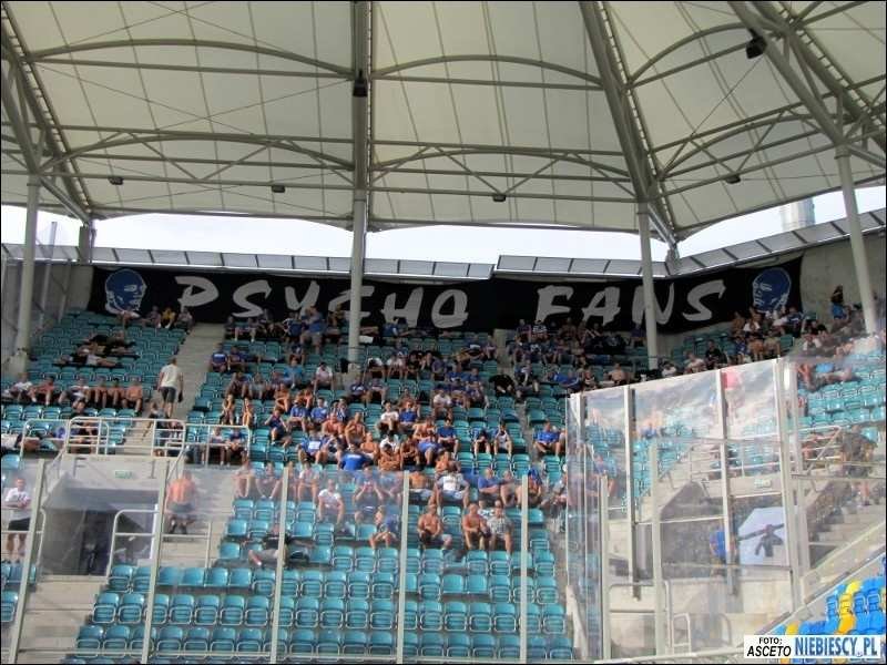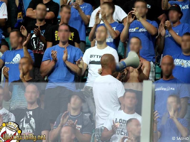 Doping pomimo zmęczenia całodniowym plażowaniem można ocenić jako dobry, z kilkoma konkretnymi momentami. Również nasz etatowy bębniarz nawet pomimo braku instrumentu dawał radę, wybijając rytm na oddzielającej sektor gości pleksi. Jak zwykle nie zabrakło pozdrowień dla naszych przyjaciół z Widzewa oraz Elany. Okrzykami "Rajmund, Rajmund pamiętamy" uczczono natomiast rocznicę śmierci naszego kibica. Chwilę później "pozdrowiono" winnych jego śmierci, śpiewając głośno "Jeb.. żaboli...".