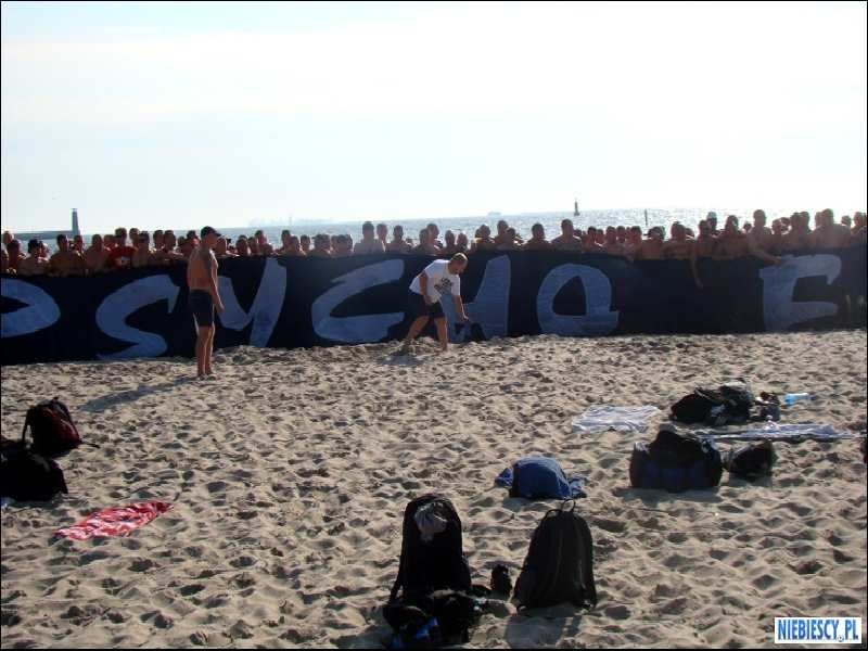Po drodze w Łodzi dosiadło się kilkunastu Widzewiaków i nadmorska eskapada ruszyła w dalszą drogę, meldując się przed godziną 8:00 na gdyńskiej plaży, gdzie kibice do zaplanowanej na 15:30 zbiórki mogli skupić się na opalaniu, pływaniu w Bałtyku oraz raczeniu się jodem i smażoną rybą.