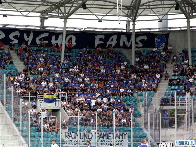 W sektorze gości zawisła tylko jedna flaga "PSYCHO FANS" oraz transparent "RAJMUND PAMIETAMY * 17.08.1986 + 18.08.2002", ku czci naszego brata po szalu.