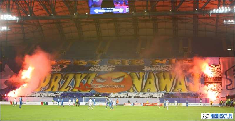 Podczas meczu nie zabrakło obustronnej wymiany "uprzejmości", która podgrzewała atmosferę na trybunach. Niebiescy pomimo niezbyt dużej liczby prowadzili naprawdę dobry doping, szczególnie wzmagał się on po każdej straconej bramce. Przy stanie 4:0 była już niezła korba wokalna, która ciągnęła się do samego końca.