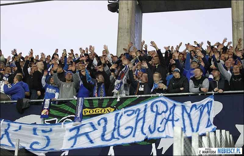 Przyznane Niebieskim wejściówki rozeszły się do ostatniej sztuki. Transportem kołowym do Kielc przybyło 730 kibiców, z czego 710 zasiadło w sektorze gości (pełna pula przyznanych biletów). Wśród obecnych zawitał nasz fan club Pogoń Staszów w sile 60 głów oraz 80-osobowa grupa Widzewa Łódź, w tym większość ze świętokrzyskiego. Dziękujemy za tak liczne wsparcie.