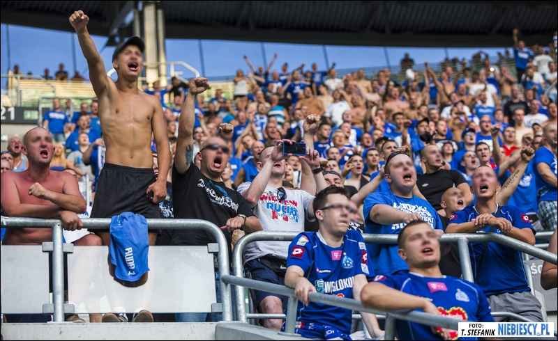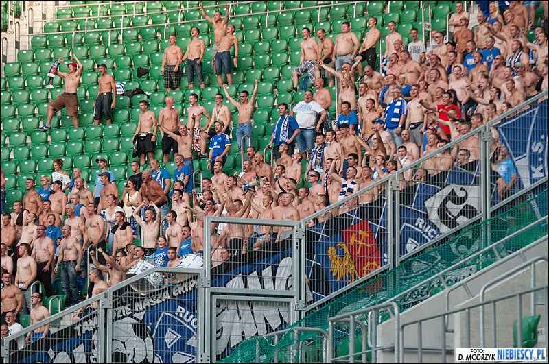 Po dosyć krótkiej przerwie letniej Niebiescy wrócili na ligowe boiska Ekstraklasy. Pierwszy mecz drużyna Ruchu Chorzów rozegrała na wyjeździe ze Śląskiem Wrocław, więc ligowe zmagania rozpoczęliśmy od upragnionych przez naszych najwierniejszych kibiców wyjazdów. Środek lata i upały przyciągnęły do stolicy Dolnego Śląska 718 fanów Niebieskich (z czego 653 weszło na sektor), wspieranych przez delegację Widzewa z flagą "RTS".