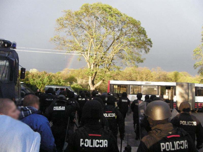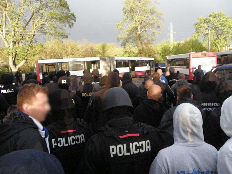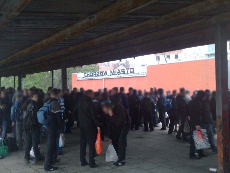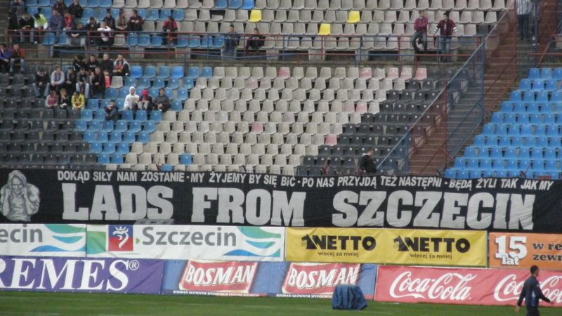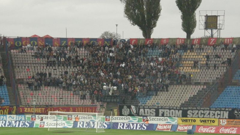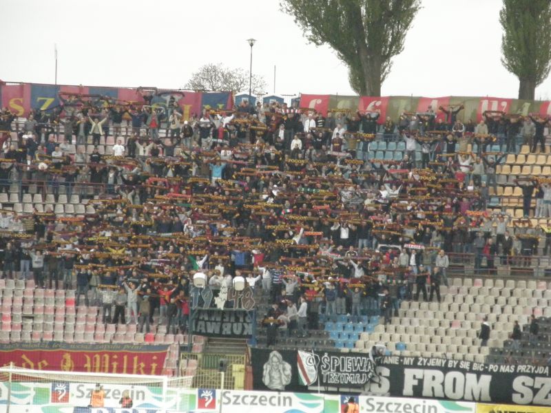 Po wielokrotnych zmianach terminu rewanżowego meczu Pucharu Polski we wtorek odbyło się w końcu spotkanie Pogoni z Ruchem. Do Szczecina dotarła grupa 320 fanów chorzowskiego Ruchu, wspierana przez liczną delegację kibiców Widzewa. Zbiórka na wyjazdowy mecz została zaplanowana na wtorek na godz. 7:15 na stacji Chorzów Miasto, gdzie ponad 15 minut później zebrani kibice ruszyli w stronę dalekiego Szczecina. Podróż minęła spokojnie i chorzowscy fani ze stacji Szczecin Dębie zostali przetransportowania autobusami na stadion, gdzie zameldowali się ponad 1,5 godziny przed rozpoczęciem spotkania. Kibice po szczegółowych rewizjach i kontrolach alkomatem w grupach kilku osobowych zostali doprowadzeni do sektora gości. W czasie, gdy "klatka" się zapełniała, na trybunach gospodarzy przybywało coraz więcej ludzi. Ogólnie mecz obejrzało ponad 10.000 kibiców Pogoni, w tym 320 fanów Ruchu. Chorzowianie wywiesili tylko jedną flagę "P (R) F" oraz prowadzili sporadyczny, ale w miarę dobry doping, który momentami przebijał się przez śpiewy szczecinian.