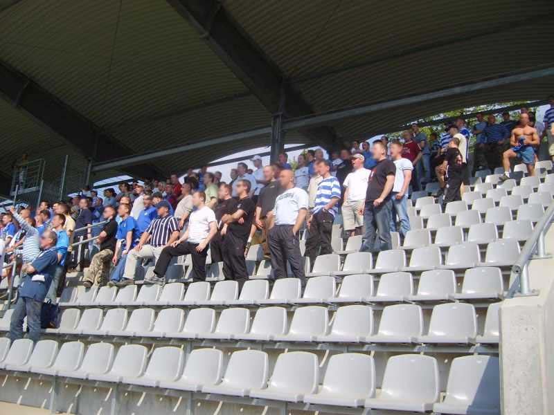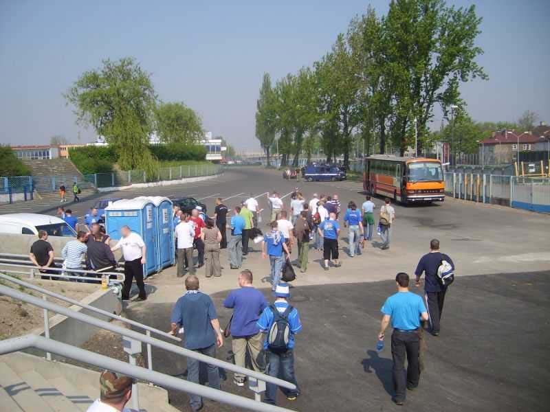 Do Legnicy wybraliśmy się autokarem i kilkunastoma autami. Droga minęła spokojnie, lecz z małą przygodą. Autokar złapał gumę, co spowodowało opóźnienie. Na miejscu najszybciej melduje się ekipa samochodowa, a reszta dojeżdża kilkanaście minut później. Legitymowanie oraz wchodzenie na sektor mija szybko i sprawnie. W klatce jest nas łącznie około 170, w tym 7 osób z FC Deutschland. Wywiesiliśmy jedną małą fanę "19 (R) 20". Miedź miała nałożone ograniczenie liczby widzów do 1175 osób. Wszystkie miejsca na ładnej trybunie zostały zajęte, a oprócz tego kilkadziesiąt osób spotkanie obserwowało zza płotu.