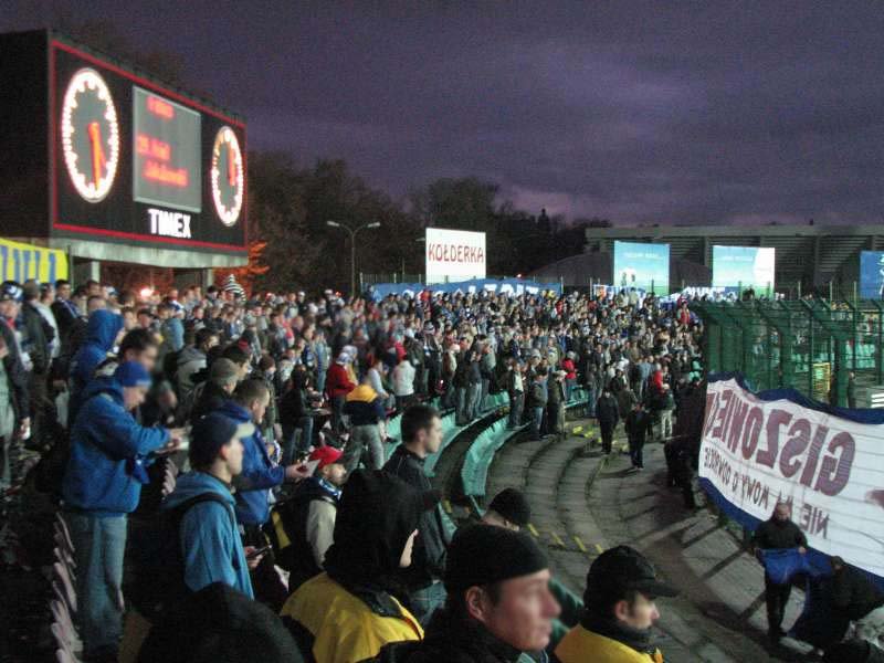 Jak się później okazało, na sektorze zasiadło nas dokładnie 758. Było nas łącznie ponad 800, ale sporo osób nie przeszło kontroli alko, a osoby z zakazami zostały w pociągu. Ta "niezbyt okazała" liczba (oczywiście w porównaniu do poprzednich wyjazdów powyżej tysiąca) nie przeszkodziła nam dobrze dopingować, zwłaszcza w II połowie. Na szczególną uwagę na pewno zasługuje śpiewane nieprzerwanie przez blisko 15 minut "Naszym Klubem HKS..." Kibice Legii, ze względu na trwający tam protest, dopingowali swoją drużynę tylko w końcówkach obu odsłon (2 razy 10 minut). Bluzgi trwały jednak cały mecz. Najczęściej polegały one na zmianie słów znanych piosenek obu ekip kibicowskich. Nie zabrakło znanej przyśpiewki "Polska bez Śląska", którą można było usłyszeć z sektorów tak gości, jak i gospodarzy.