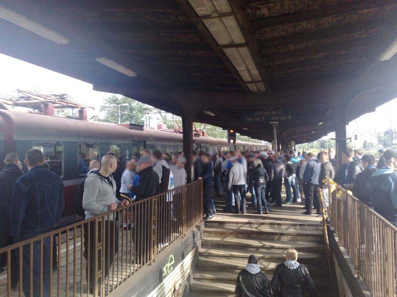 Mecz z Polonią Warszawa nie wywołał mobilizacji wśród kibiców Ruchu. Do stolicy wybrało się 270 fanów "Niebieskich". W sektorze gości na Konwiktorskiej pojawiło się jednak 230 "strażników niebieskiej eRki", wspartych przez 10 Widzewiaków (głównie Fan Club Warszawa). Pozostali spędzili mecz pod bramami stadionu. Fani Ruchu podróżowali do Warszawy autokarami i samochodami. Cała grupa wyjazdowa dotarła do celu wyprawy na prawie dwie godziny przed meczem. Wchodzenie odbyło się normalnie i wszyscy - oprócz 30 osób, które nie przeszły testu alkomatem - zameldowali się w "klatce" już przed rozpoczęciem spotkania.