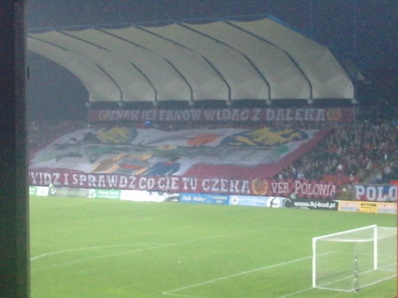 Doping tego dnia nie stał na dobrym poziomie. Szczególnie kibice Ruchu nie zaprezentowali pełni swoich możliwości wokalnych. Fani obu ekip nie szczędzili sobie uprzejmości i kilka razy można było usłyszeć obustronne bluzgi. Sympatycy "Czarnych Koszul" większość czasu poświęcili jednak na wyzywanie lokalnych rywali. Momentami przez 8-10 minut zapominali o swojej drużynie i robili wszystko co w swojej mocy, by usłyszeli ich "Legioniści". Zawodnicy Ruchu nie sprawili radości swoim kibicom i przegrali z Polonią 1:3. Po zakończeniu meczu podeszli pod sektor gości i podziękowali za doping. Chorzowscy fanatycy po spokojnej podróży wrócili na Cichą o godz. 1:20. Podziękowania dla Widzewiaków za wsparcie!