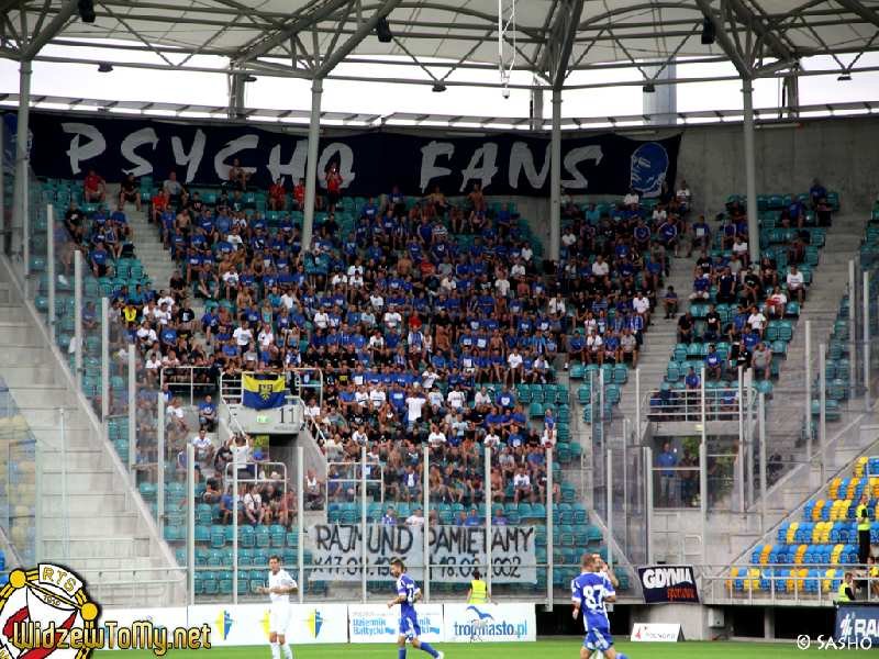 Około godz. 16:00 fani Ruchu zostali przewiezieni podstawionymi autobusami pod stadion miejski. Wchodzenie na sektor przebiegło dosyć sprawnie, również depozyt wyglądał o niebo lepiej niż podczas naszej ostatniej wizyty w Gdyni. W sektorze gości zasiadło 493 fanów Ruchu, w tym kilkunastu Widzewiaków. 46 osób z różnych względów pozostało pod stadionem.