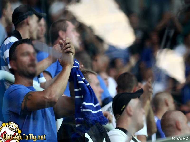 Doping pomimo zmęczenia całodniowym plażowaniem można ocenić jako dobry, z kilkoma konkretnymi momentami. Również nasz etatowy bębniarz nawet pomimo braku instrumentu dawał radę, wybijając rytm na oddzielającej sektor gości pleksi. Jak zwykle nie zabrakło pozdrowień dla naszych przyjaciół z Widzewa oraz Elany. Okrzykami "Rajmund, Rajmund pamiętamy" uczczono natomiast rocznicę śmierci naszego kibica. Chwilę później "pozdrowiono" winnych jego śmierci, śpiewając głośno "Jeb.. żaboli...".