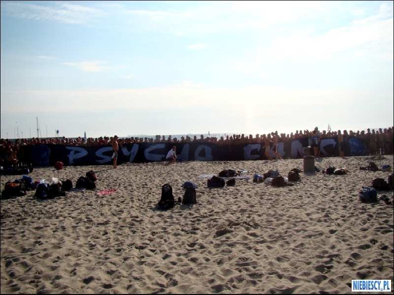 Po drodze w Łodzi dosiadło się kilkunastu Widzewiaków i nadmorska eskapada ruszyła w dalszą drogę, meldując się przed godziną 8:00 na gdyńskiej plaży, gdzie kibice do zaplanowanej na 15:30 zbiórki mogli skupić się na opalaniu, pływaniu w Bałtyku oraz raczeniu się jodem i smażoną rybą.
