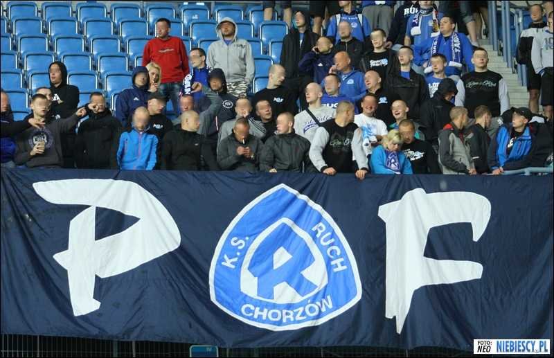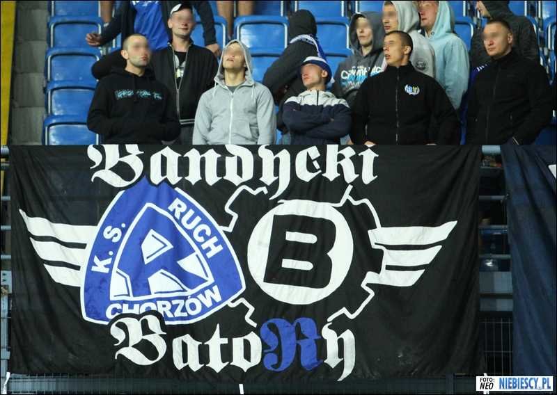 Płoty sektora gości przyozdobiły flagi: "P/R\F", "Special Guest", "Śląscy Ekstremiści", "RTS" (Widzewa), "Niebieskie Siemce - Ekipa Wyjazdowa", "Nikisz Fans", "N/R\K", "NRŚL Gang", "Świętochłowice", "Niebieskie Łaziska", "Bandycki Batory", "Kęty on tour" oraz transparent "Baluś PDW".
