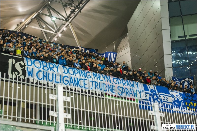 Doping Niebieskich można określić jako przyzwoity. Bywało naprawdę głośno, lecz nie zabrakło też przestojów. Legia niech oceni się sama, natomiast sektor gości określił ją krótkim i dosadnym okrzykiem "cykory".