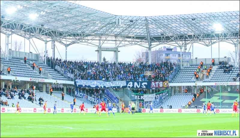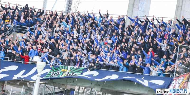 Przyznane Niebieskim wejściówki rozeszły się do ostatniej sztuki. Transportem kołowym do Kielc przybyło 730 kibiców, z czego 710 zasiadło w sektorze gości (pełna pula przyznanych biletów). Wśród obecnych zawitał nasz fan club Pogoń Staszów w sile 60 głów oraz 80-osobowa grupa Widzewa Łódź, w tym większość ze świętokrzyskiego. Dziękujemy za tak liczne wsparcie.