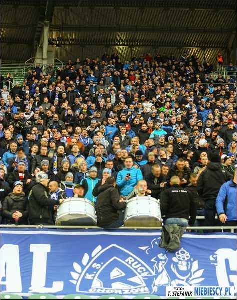 Przed pierwszym gwizdkiem praktycznie wszyscy kibice Ruchu obecni byli już na trybunie, zapełniając w liczbie 1300 osób. Sektor przyozdobiły 3 flagi: "Special Guest", "ŚP. Herman" oraz "19/R\20".